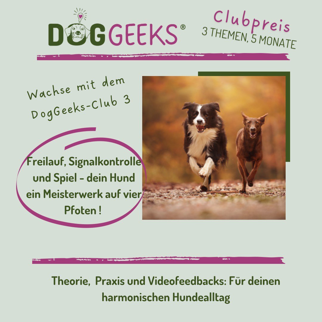 Im DogGeeks Club 3 ab 01.02.2025 erwarten dich spannende Themen aus dem Alltag mit deinem Hund.